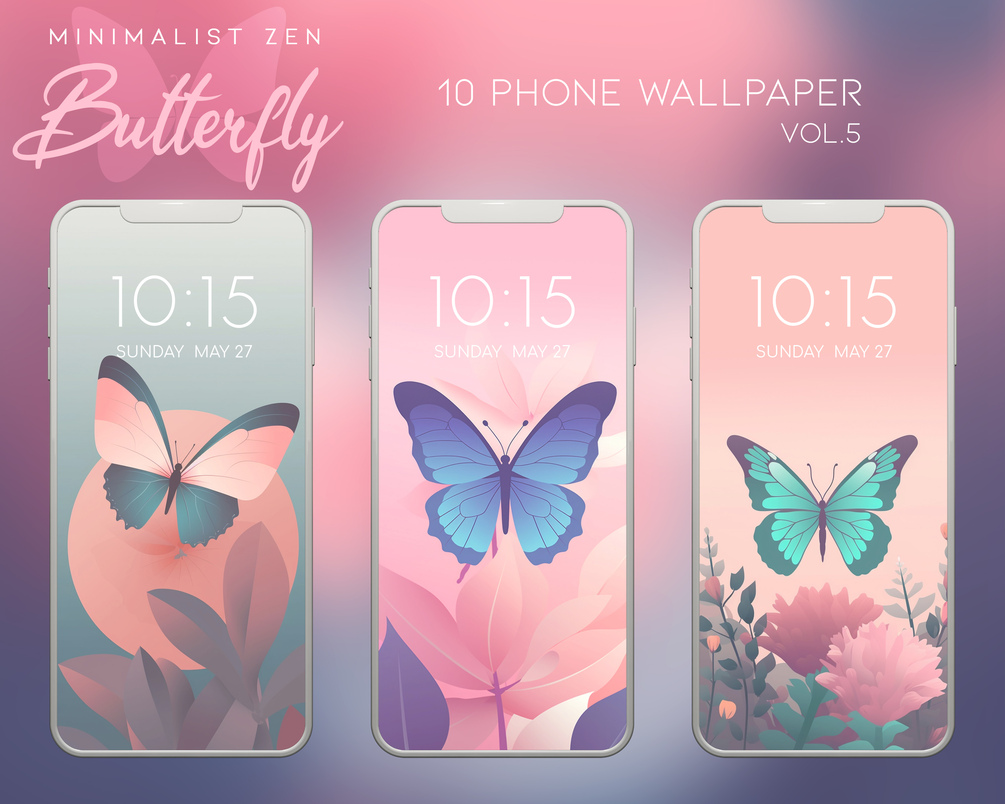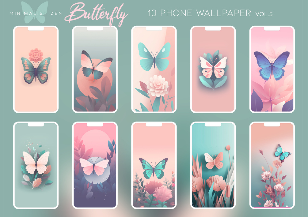Butterfly Phone Wallpaper Vol.5, Smartphone Wallpaper Set, iPhone Aesthetic Background, Minimalistic iPhone Wallpaper, Pastel Colors